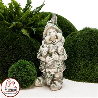 Садовая фигура Гном с поганками F07769. Фигура сделана из влагостойкого и ударопрочного материала - полистоуна. Она подходит для декора садовых и дачных участков, парков и скверов, детских площадок. Тип покраски: дизайнерский.