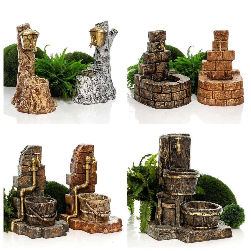 - Стилизованные под бересту, камень, кирпич, подойдут для любого садового участка;