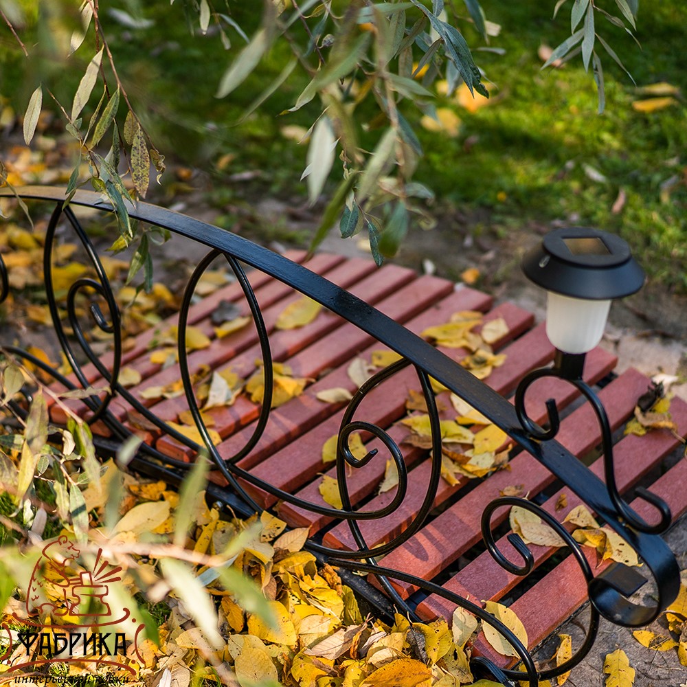 Декоративный мостик оснащен 2 фанариками, что позволяет ему выглядеть необычайно красиво в ночное время. Перила украшенны изящной ажурной ковакой. Разборная констуркция облечает транспортировку.
