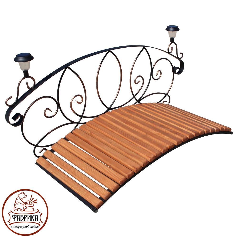Декоративный кованый мостик 862-01R может служить переправой, через небольшой ручеёк на учаске. Так же данная модель будет отично сочитаться с «сухим ручейком». Прочная и надёжная конструкция без турда выдержит вес нескольких взрослых людей. Все деревянные элементы обработанны специальными влагостойкими составами.