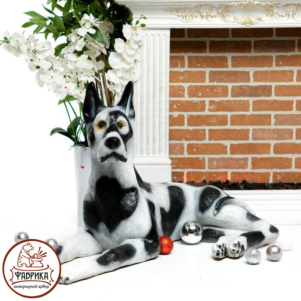 Садовая фигура Дог. Собака в точности повторяет фигуру настоящей собаки. Изготовлена скульптура из стеклопластика, прочного и влагостойкого материала. Вариант покраски: натуральный.