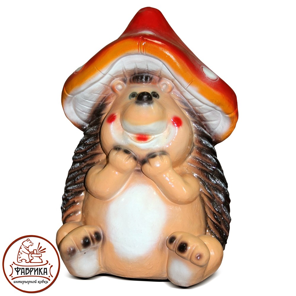 Фигурка в виде сказочного персонажа ежик в шляпке мухомора.