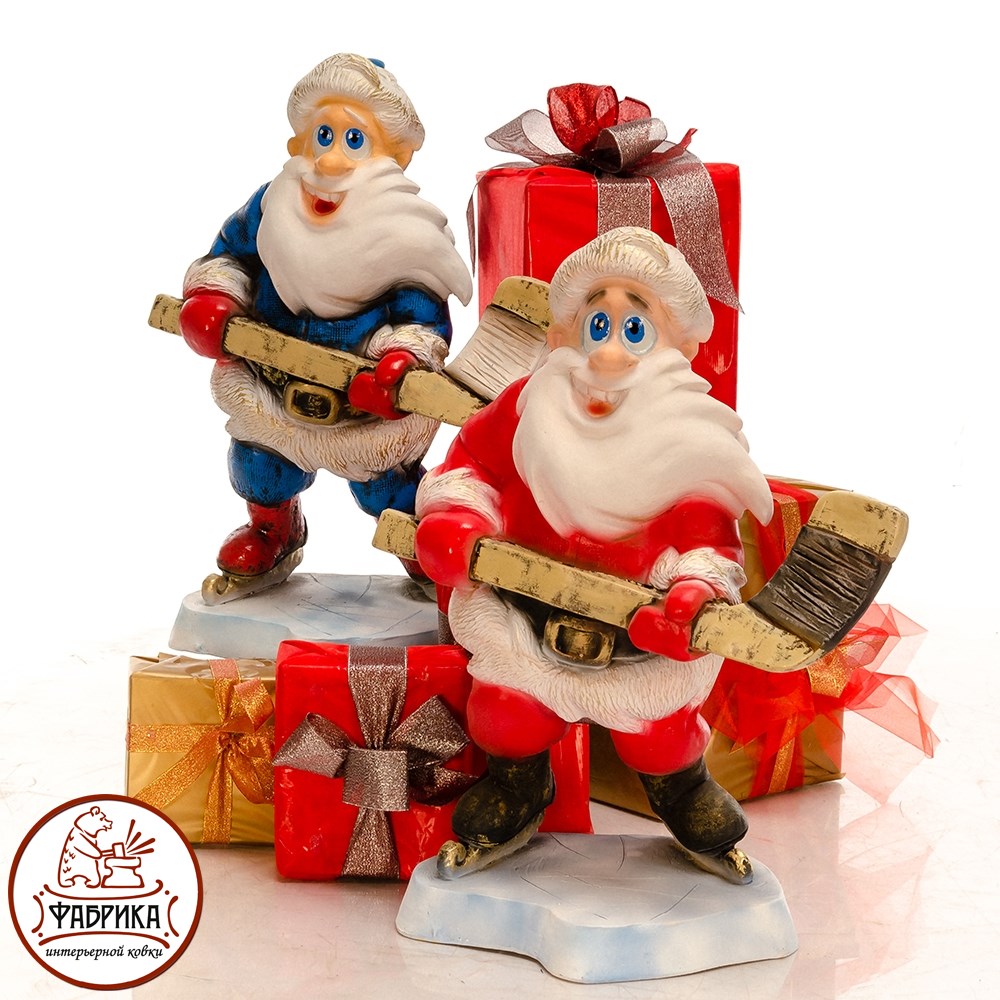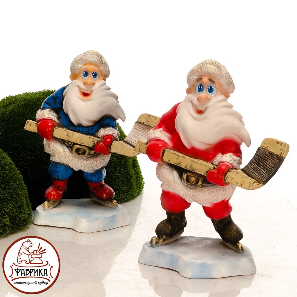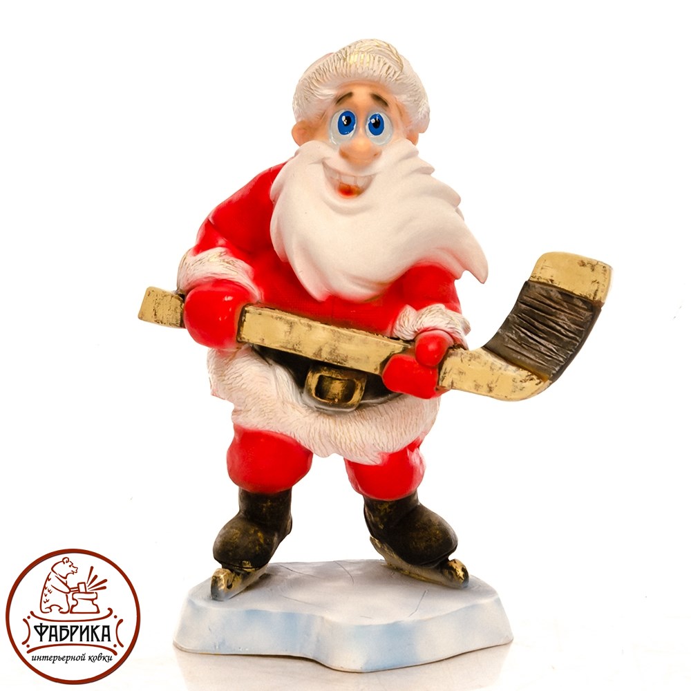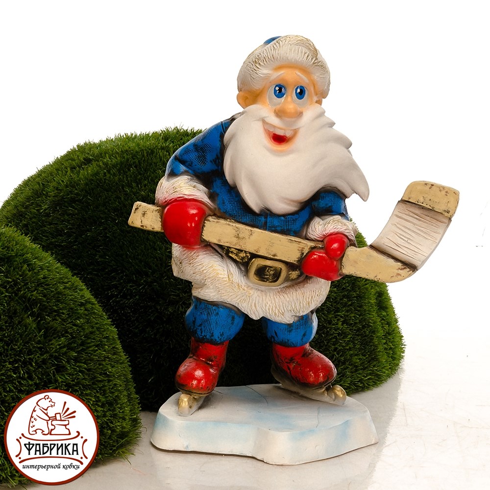 Фигура Дед мороз с клюшкой для новогоднего декора. Материал изготовления - полистоун