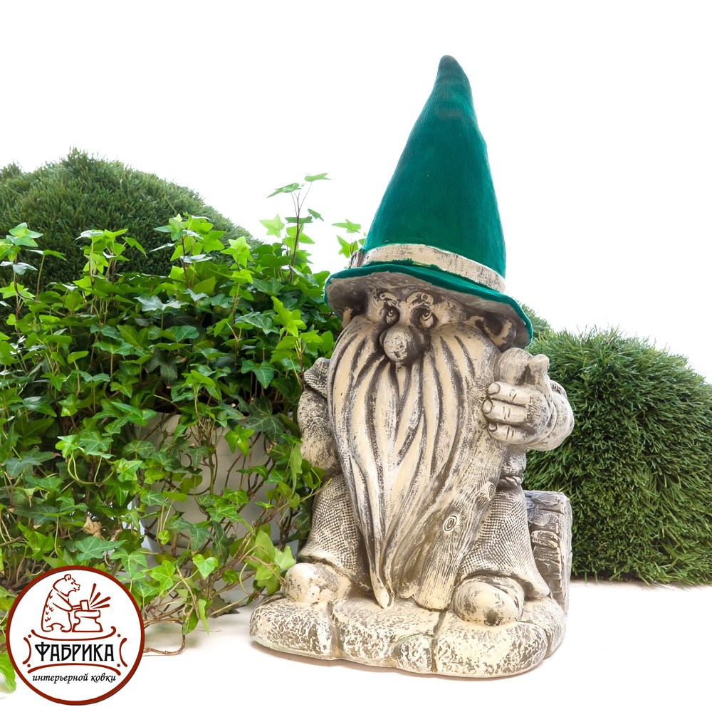 Садовая фигура Гном на пеньке. Материал изготовления: полистоун, флок.