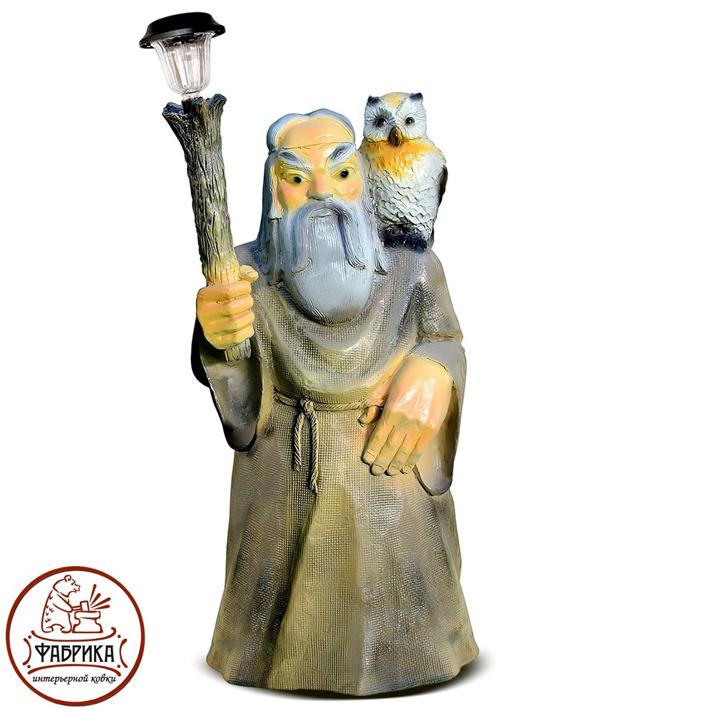 Садовый светильник старик с филином. Оригинальный фонарь на вашем садовом участке будет освещать зеленую территорию в темное время суток.
