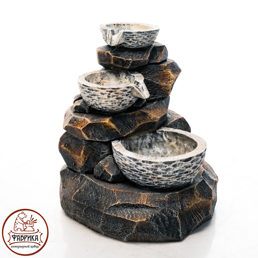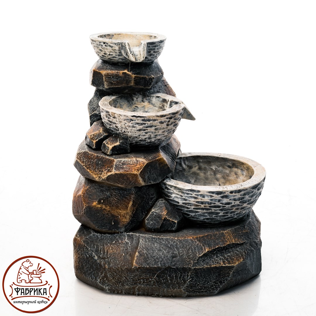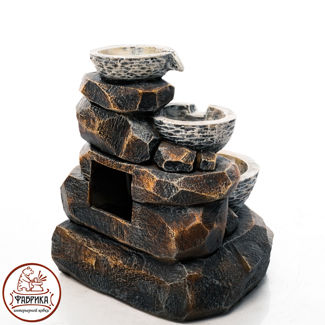 - Фонтаны оснащен помпой, с помощью которой происходит циркуляция воды.