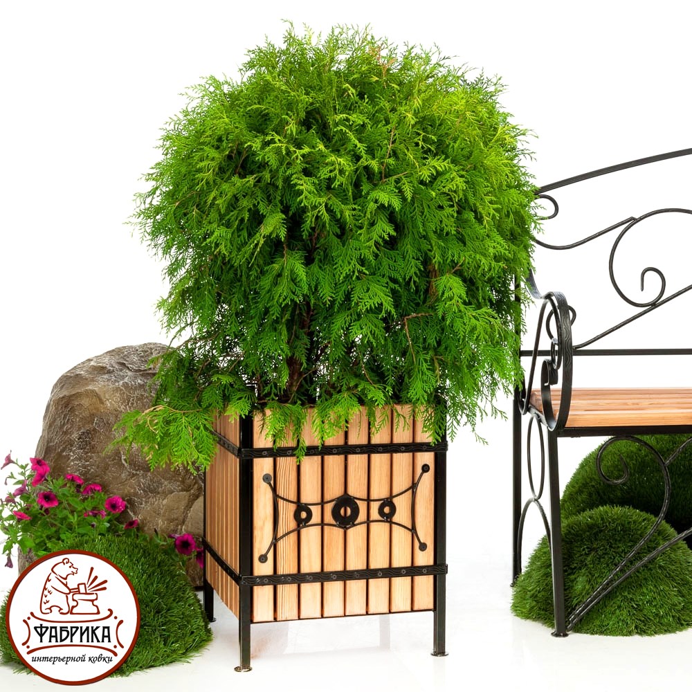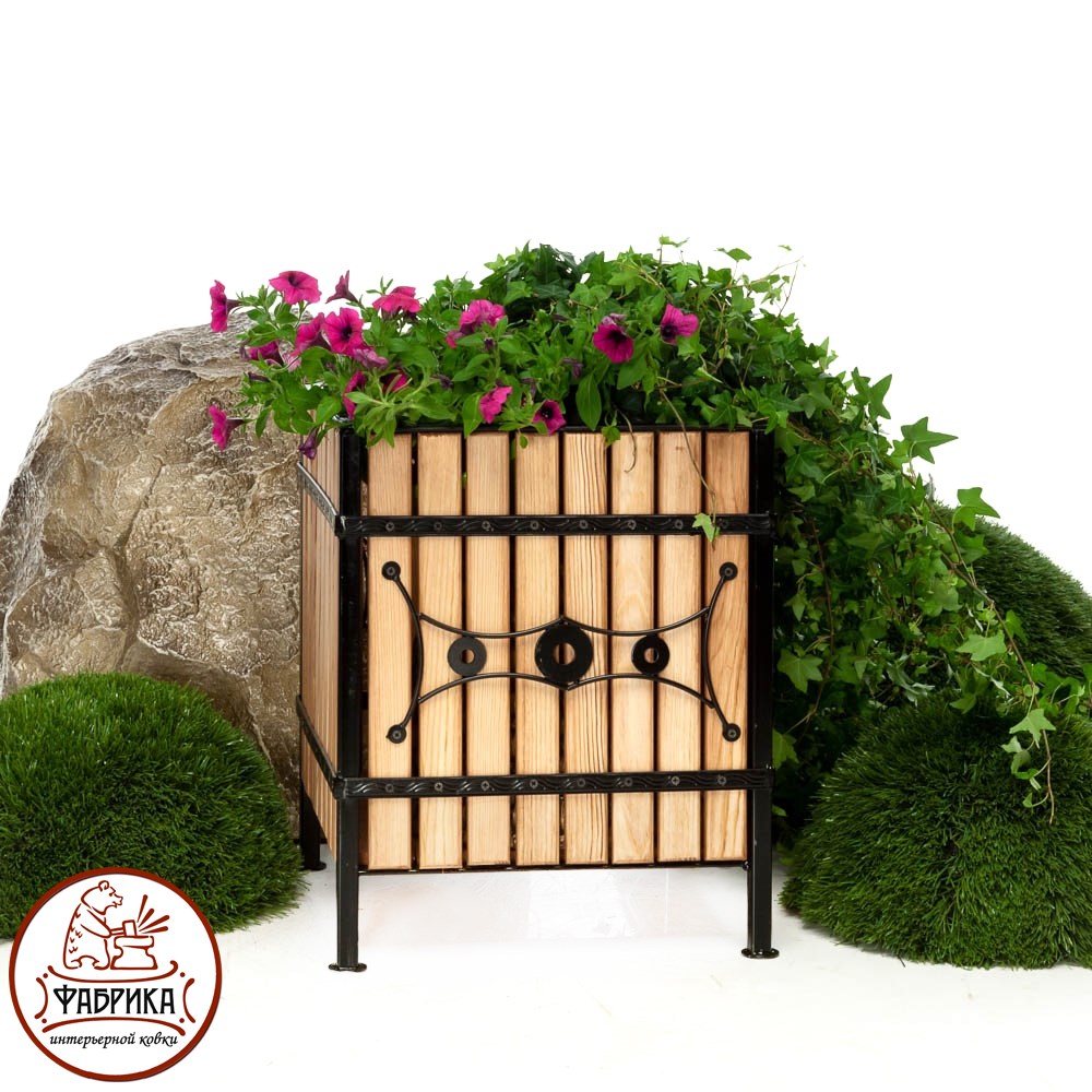 Кадка цветов 59-324 сделана из металла и натуральной древесины. Кадка может быть использована для установки цветочных горшков или посадки растений.