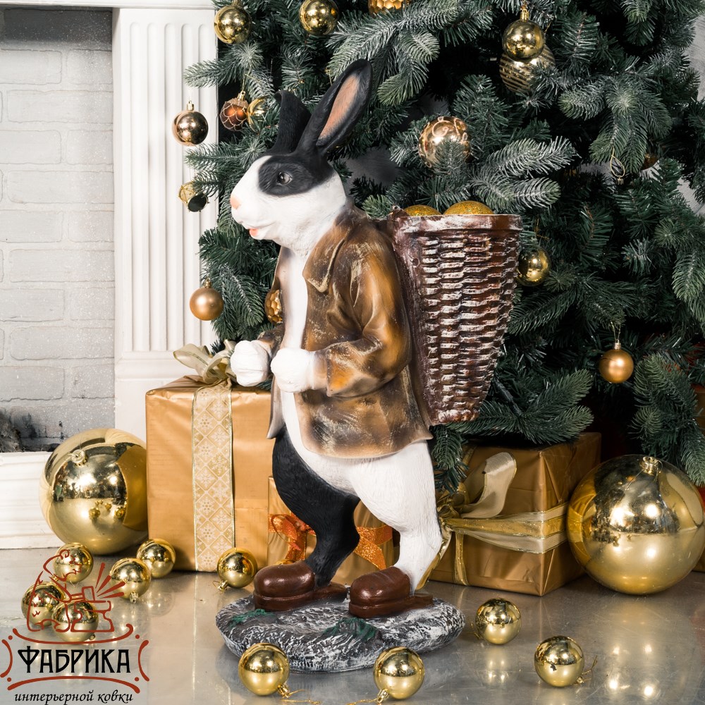Кашпо для растений Заяц с корзиной F01042-WBL