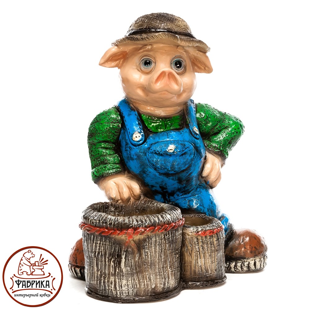 Декоративное кашпо для цветов Поросенок с корзинкой арт. F08494 впишется на любом садовом или дачном участке. Материал изготовления: полистоун. Подходит для посадки растений.