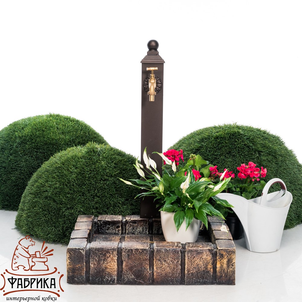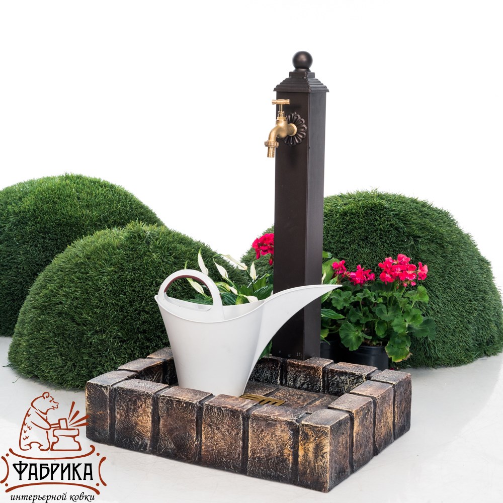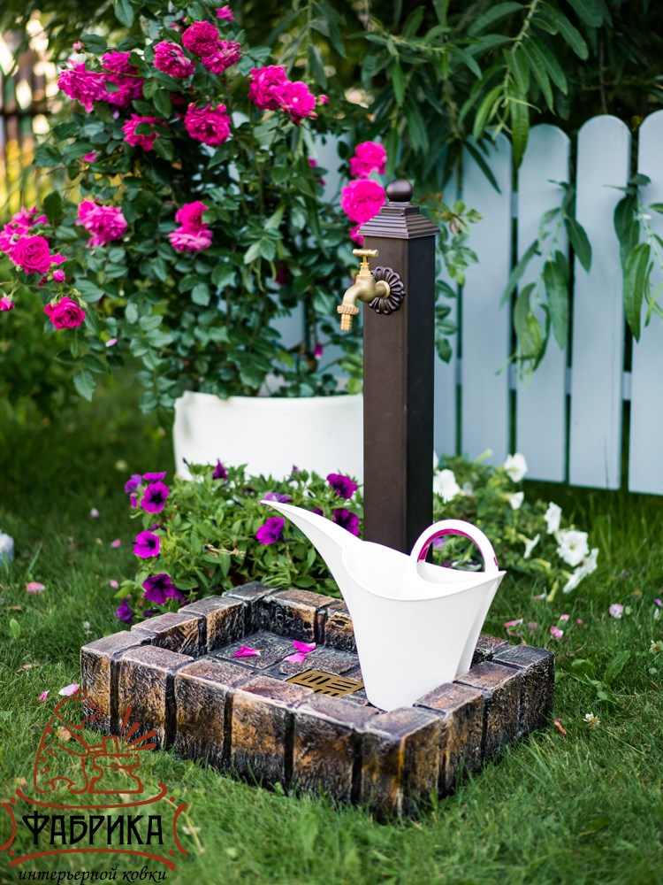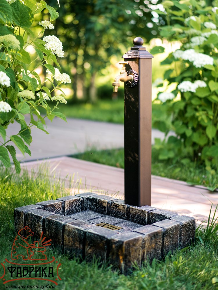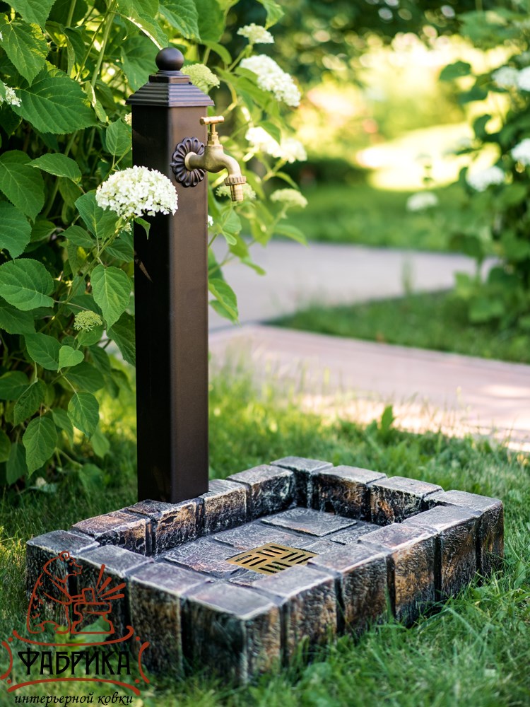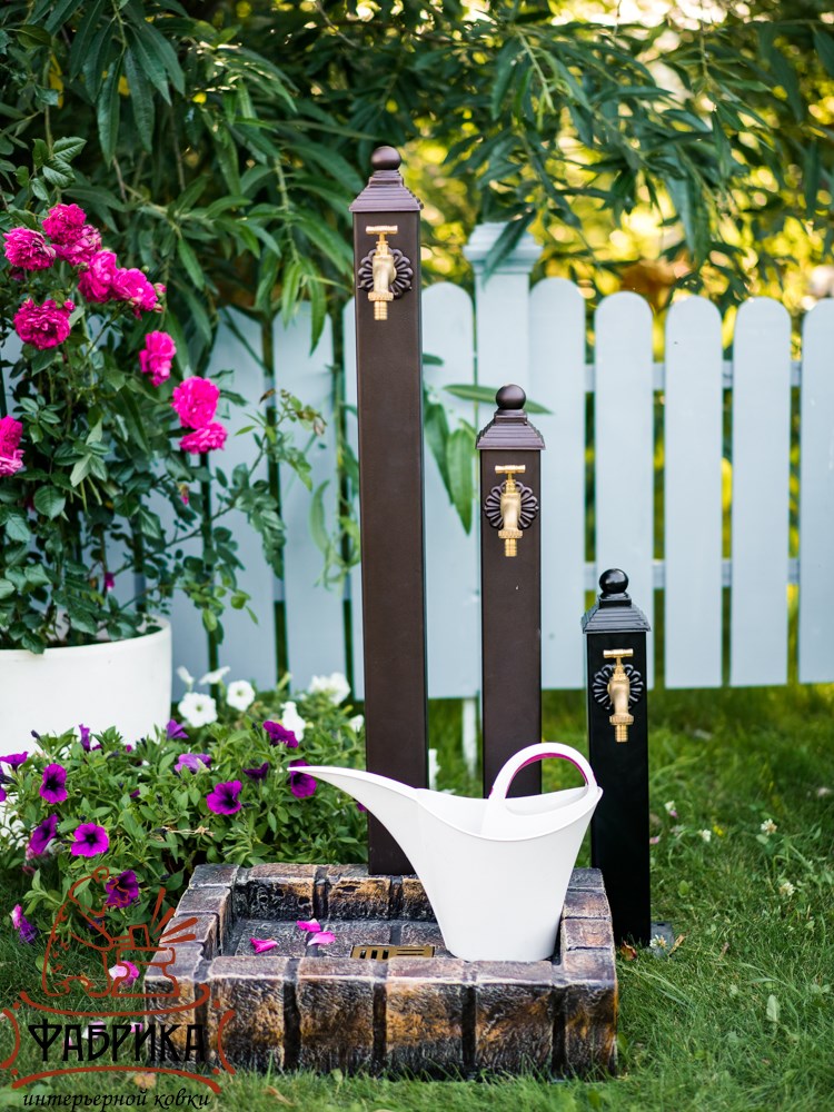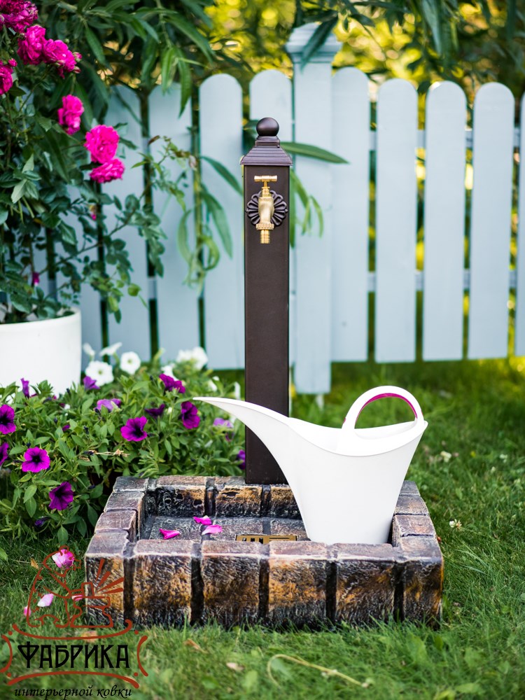 Колонка применяется как в декоративных, так и практических целях: предназначается для подачи воды, которая используется для полива растений или гигиены рук.