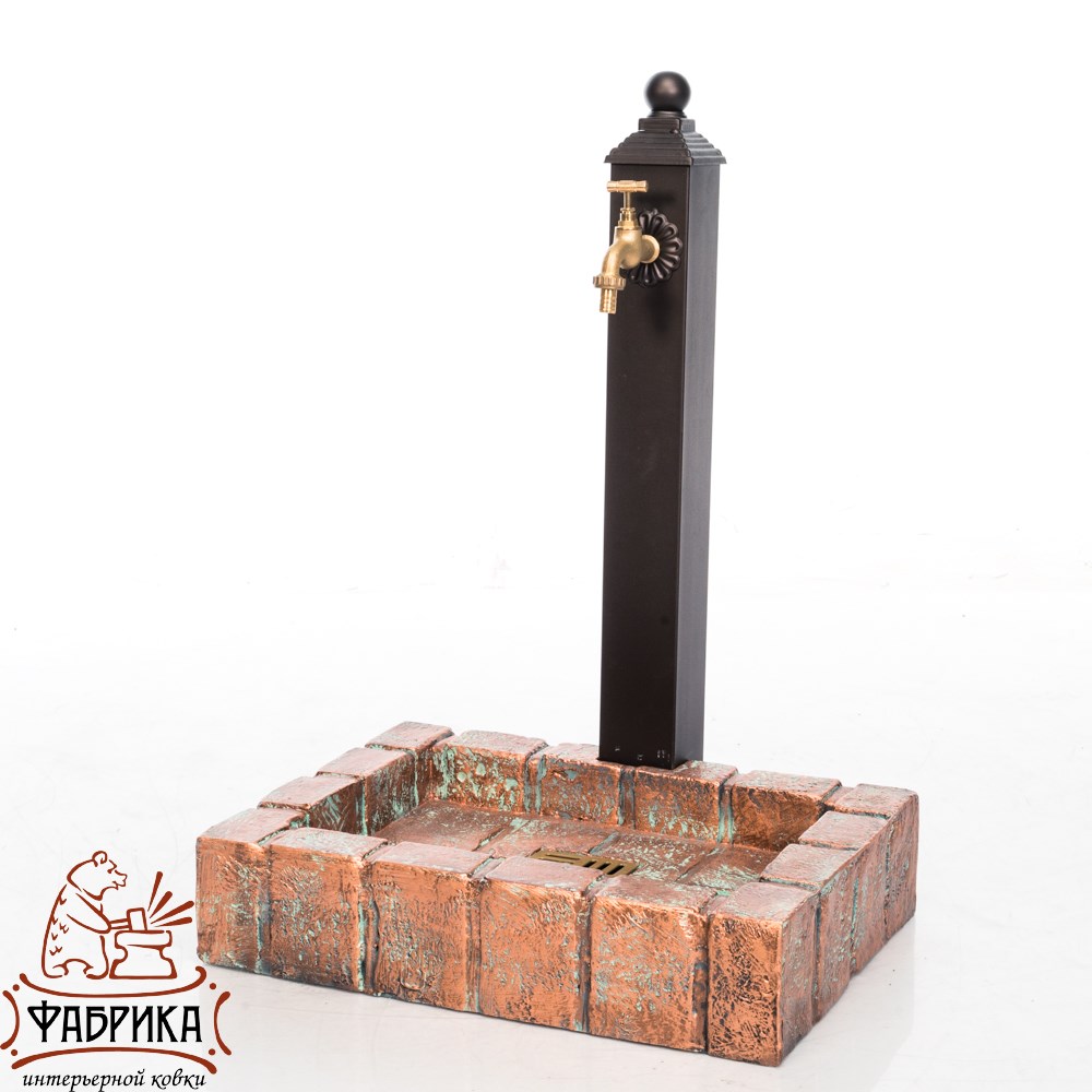 - Колонка подключается гибким шлангом к водоснабжению, комплектуется поддоном под камень и краном.