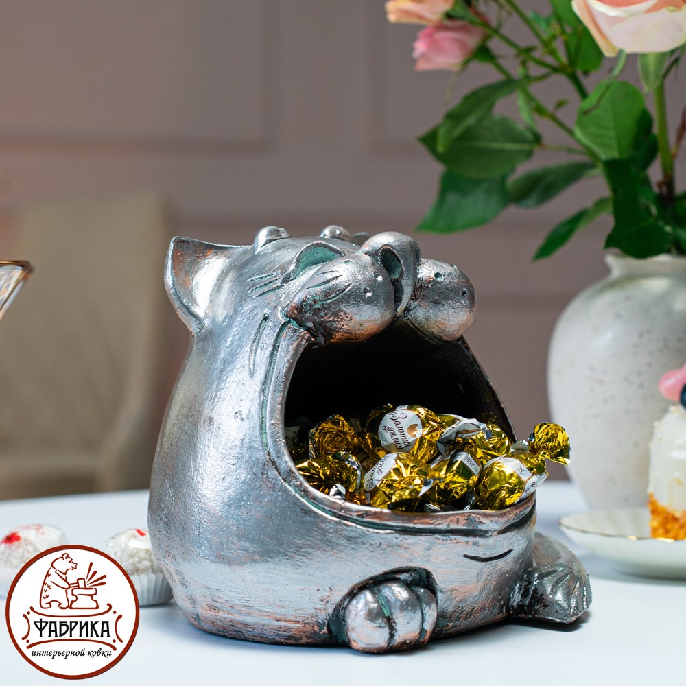 Уникальный дизайн: Конфетница в виде милого кота привлечет внимание и станет настоящим украшением вашего стола. Идеально подходит для любителей животных и тех, кто ценит оригинальные предметы декора.