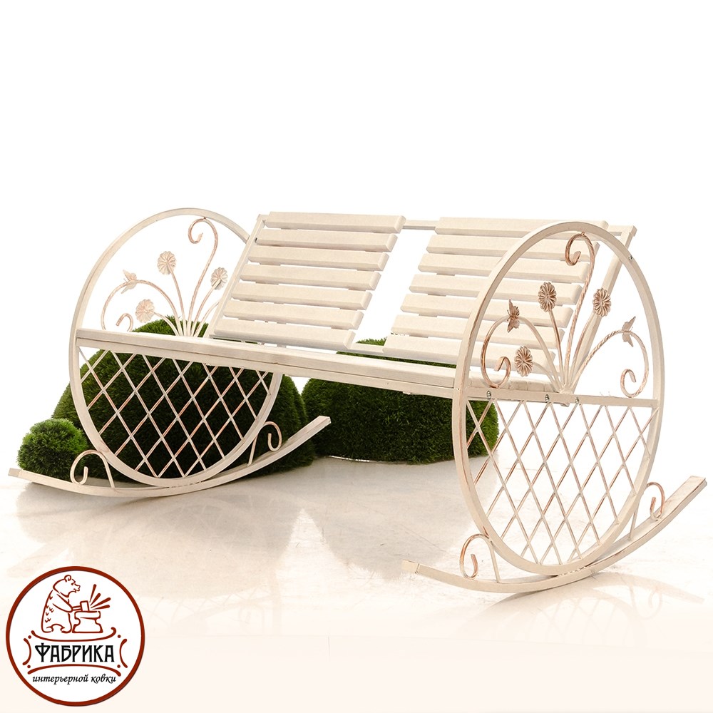 Кресло-качалка 881-37R. Изысканный кованый декор. Прочная конструкция. Цвет металла - белый с золотом. Разборная модель очень удобна при транспортировке и легка в сборке.