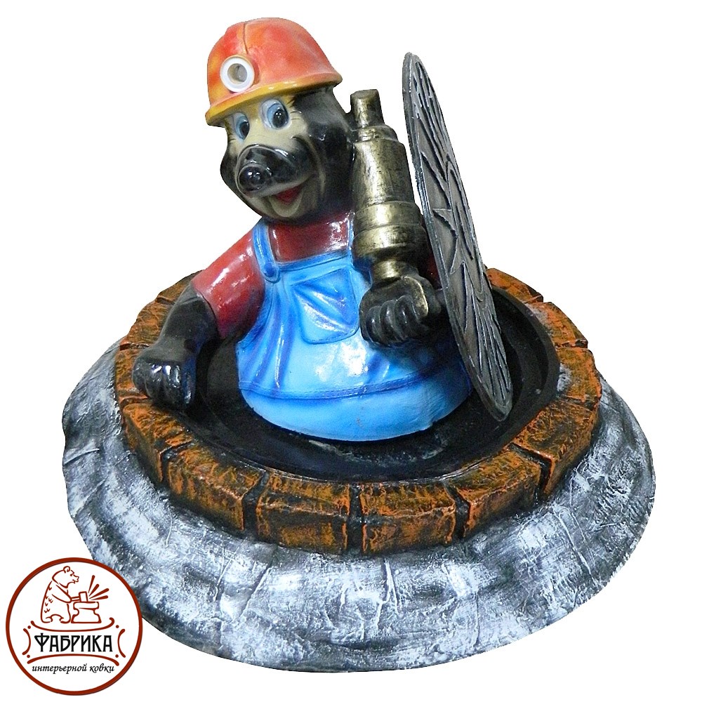 Декоративная крышка крот в каске. Она подходит для укрытия крышек люка, септиков и других неприглядных мест на дачном учатке для маскировки. Фигура является полой внутри. Стеклопластик, материал изготовления, имеет абсолютную устойчивость к влаге.