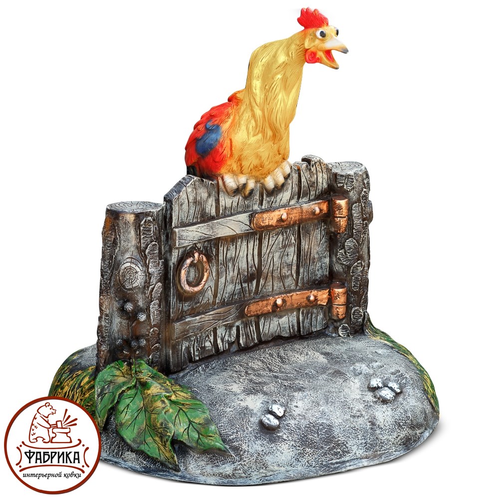 Декоративная крышка люка Петух на заборе изготовлена из стеклопластика. Служит для маскировки колодцев, люков на даче. Влагостойкий и ударопрочный материал можно оставить на улице даже в холодное время года. Среди белоснежных сугробов петух точно станет изюминкой вашего сада.