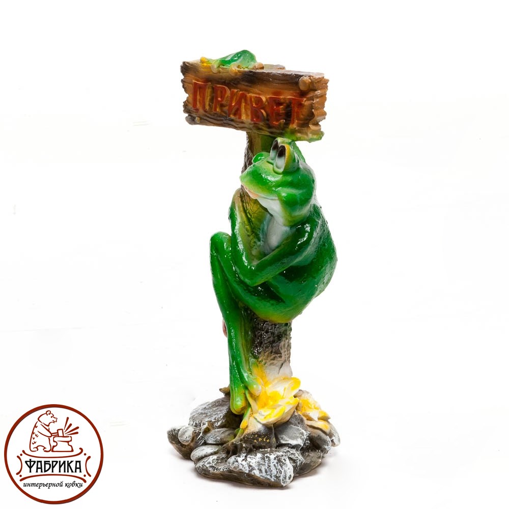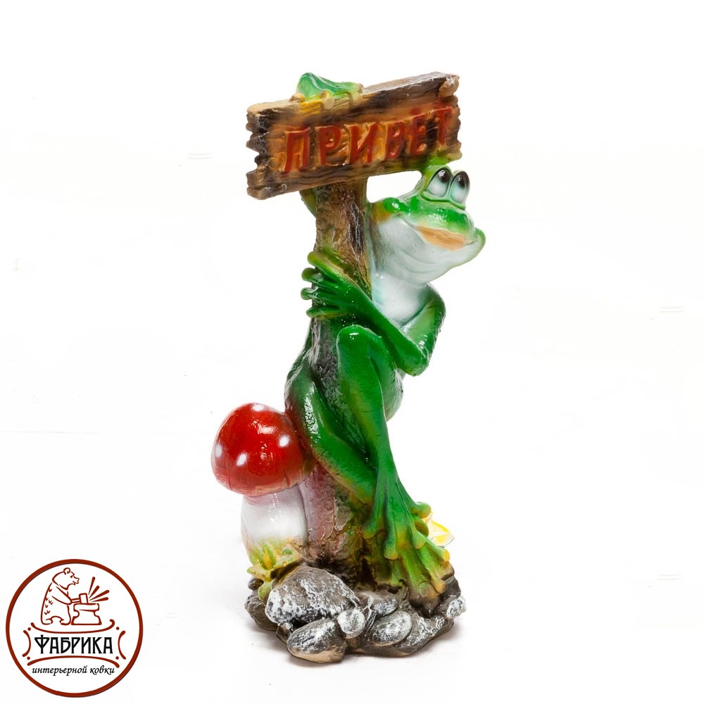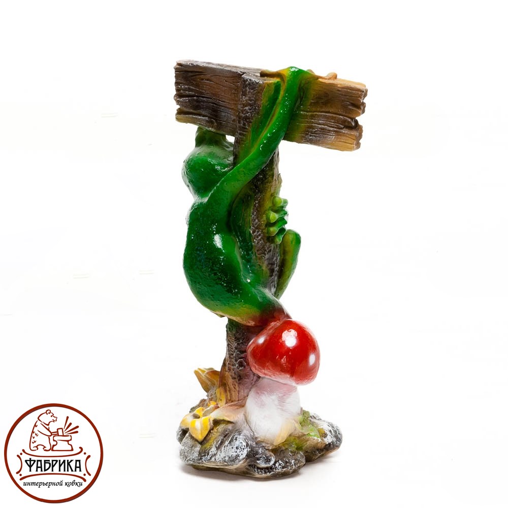 Садовая фигурка Лягушка с табличкой. Материал изготовления: полистоун (влагостойкий). Фигура подходит для декора садовых участков, оформления зоны рядом с водоемом или прудом на даче.