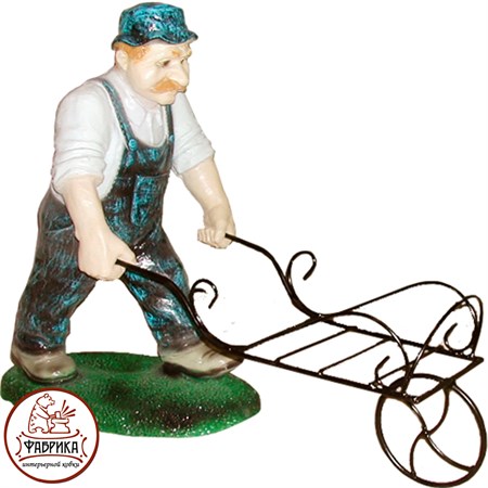 Садовая фигура Мужик с тачкой для украшения дачного участка. Фигурка для сада изготовлена из полистоуна, ударопрочного и влагостойкого материала. Украшение для сада оригинально впишется в любой дизайн загородного ландшафта.