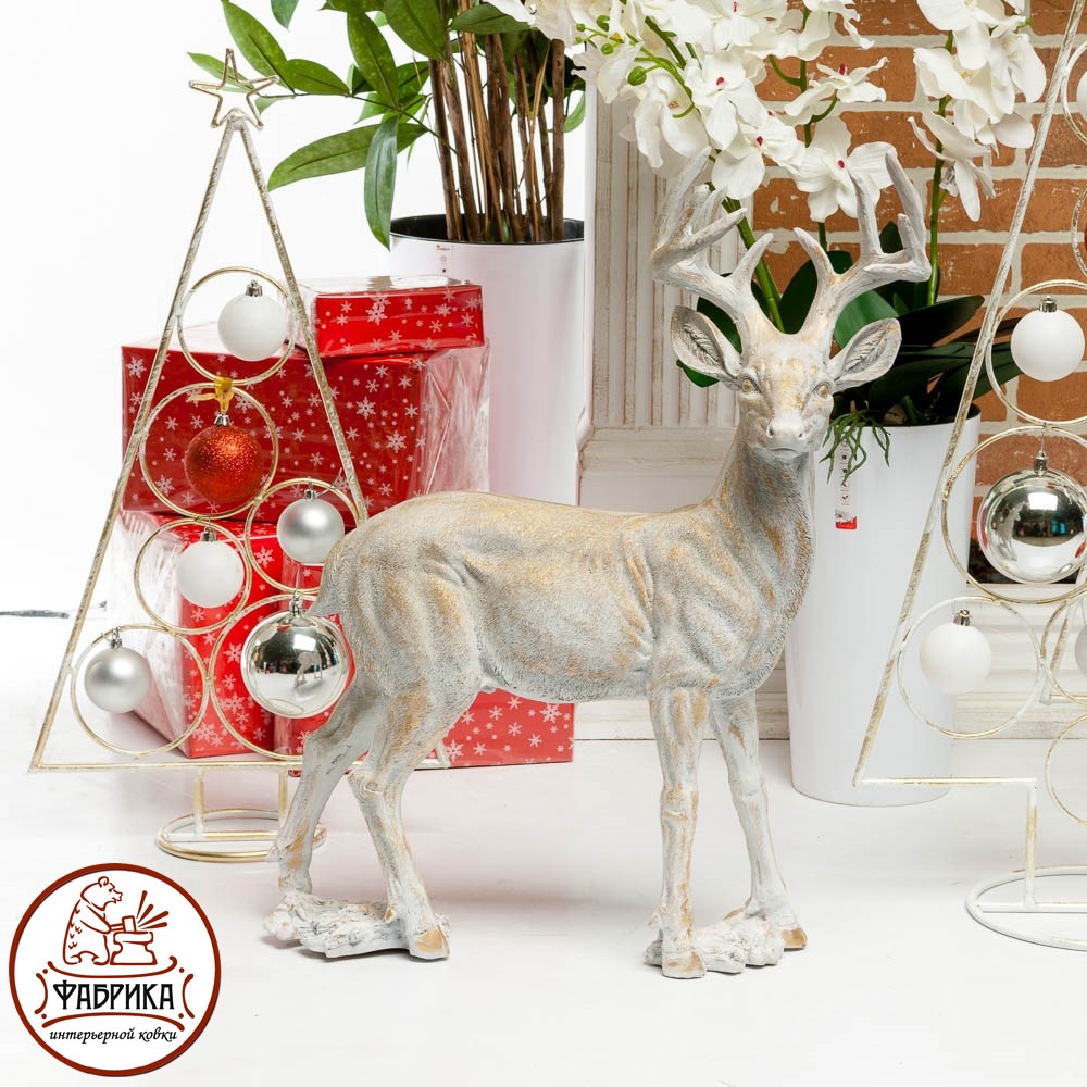 Интерьерная фигура олень - новогодняя коллекция. Композитный материал изготовления. Подходит для декора помещений, квартир, загородных домов, холлов гостиниц и ресторанов.
