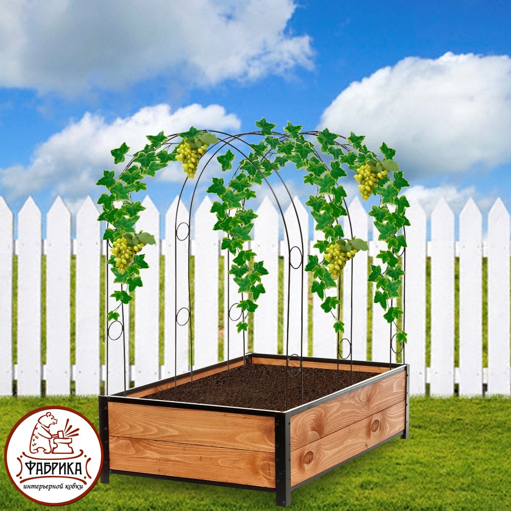 Опора для растений. Изготовлена из металла. Подходит для установки в высокую грядку в качестве опоры для огурцов и друих вьющихся растений.