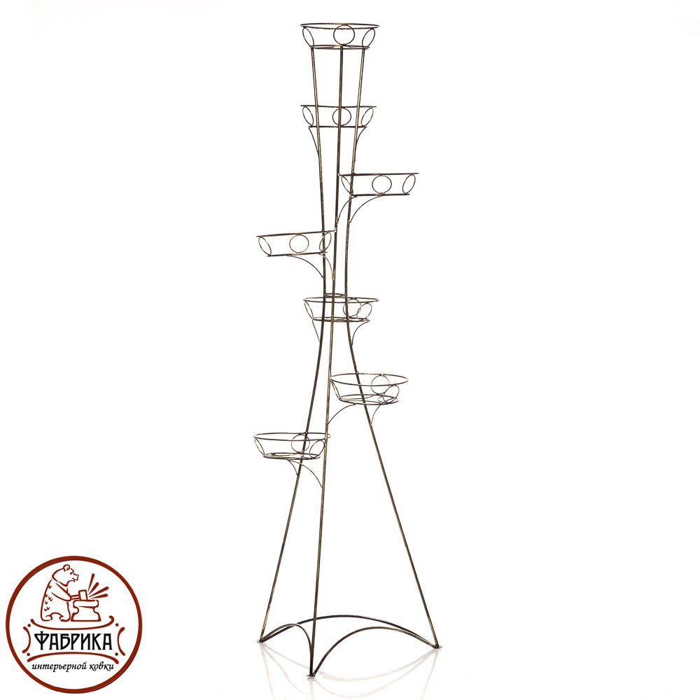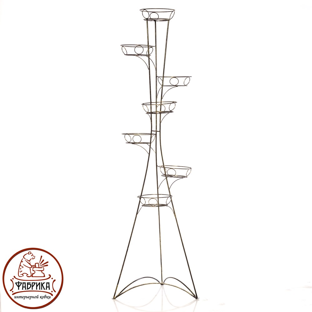 Подставка для цветов "Классика" арт. 10-007. Ножки стойки соединены между собой, что обеспечивает подставке устойчивость. Подставка предназначена для размещения семи цветочных кашпо, изготовлена из металла и окрашена в черный с золотым цвет.