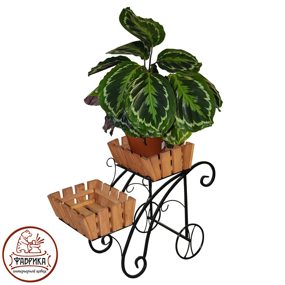 Основу конструкции садовой подставки 59-412 составляет, кованый металлический каркас и деревянные кадки для подставки растений. Металл покрашен в чёрный цвет а дерево имеет естественный сосновый оттенок. Выгодная оптовая цена, возможна поставка крупным и мелким оптом.