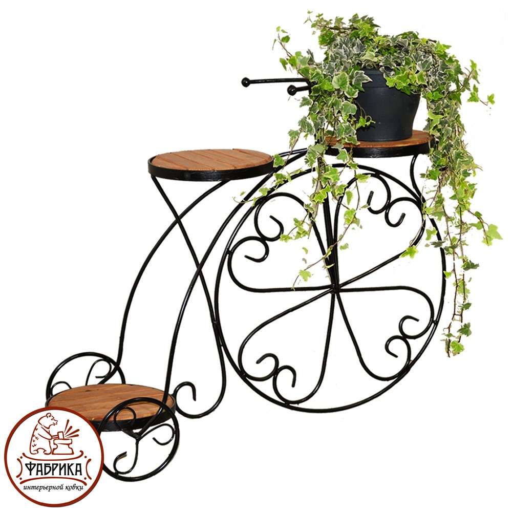 Подставка для цветов велосипед 59-413 предназначена для размещения 3 цветочный горшков. Выполнена из металла и дерева с элементами художественной ковки.