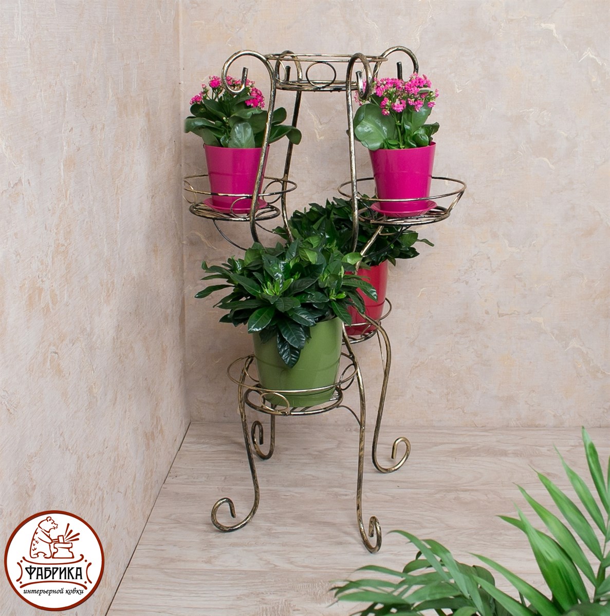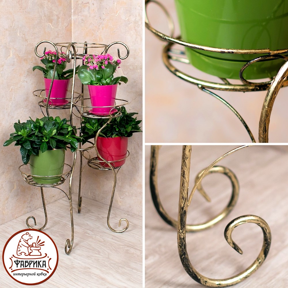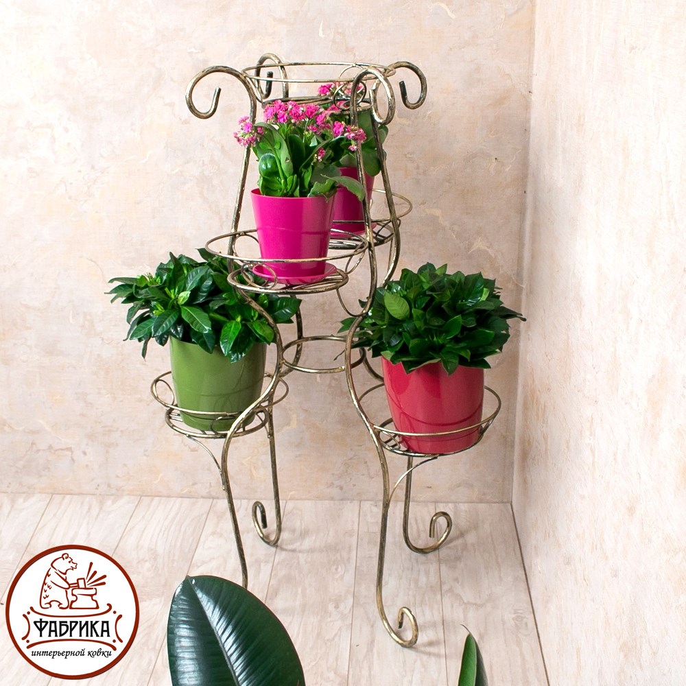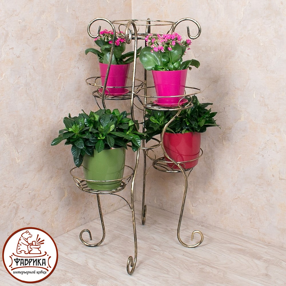 Подставка для цветов 11-035 изготовлена из прочного и надёжного материала - кованого металла. Стойка рассчитана на 5 цветочных горшков. Выгодная оптовая цена, возможна поставка крупным и мелким оптом.