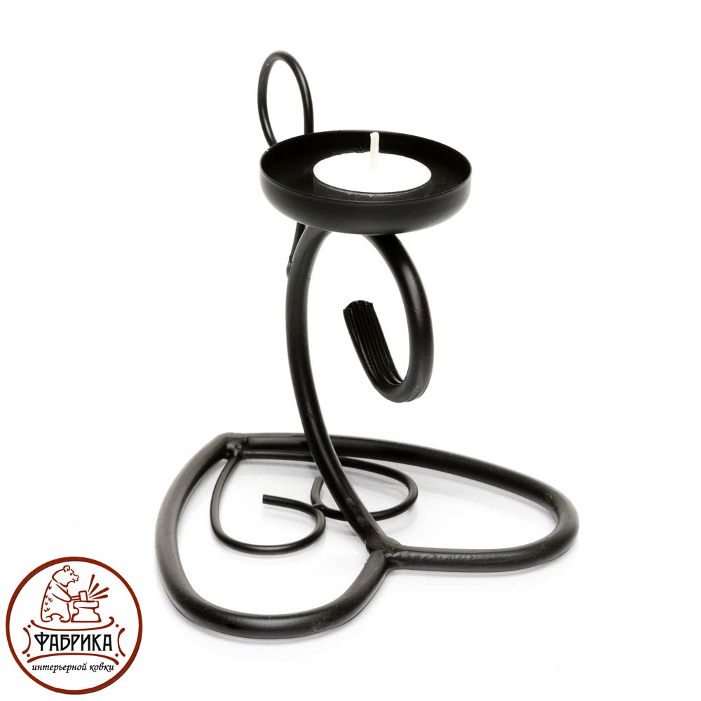 Подсвечник на одну свечу арт. 607-20. Материал изготовления: металл. Покраска: черный цвет. Подходит для размещения: на столе, полке, тумбе, комоде, камине. Декоративные элементы: сердца, завитки.