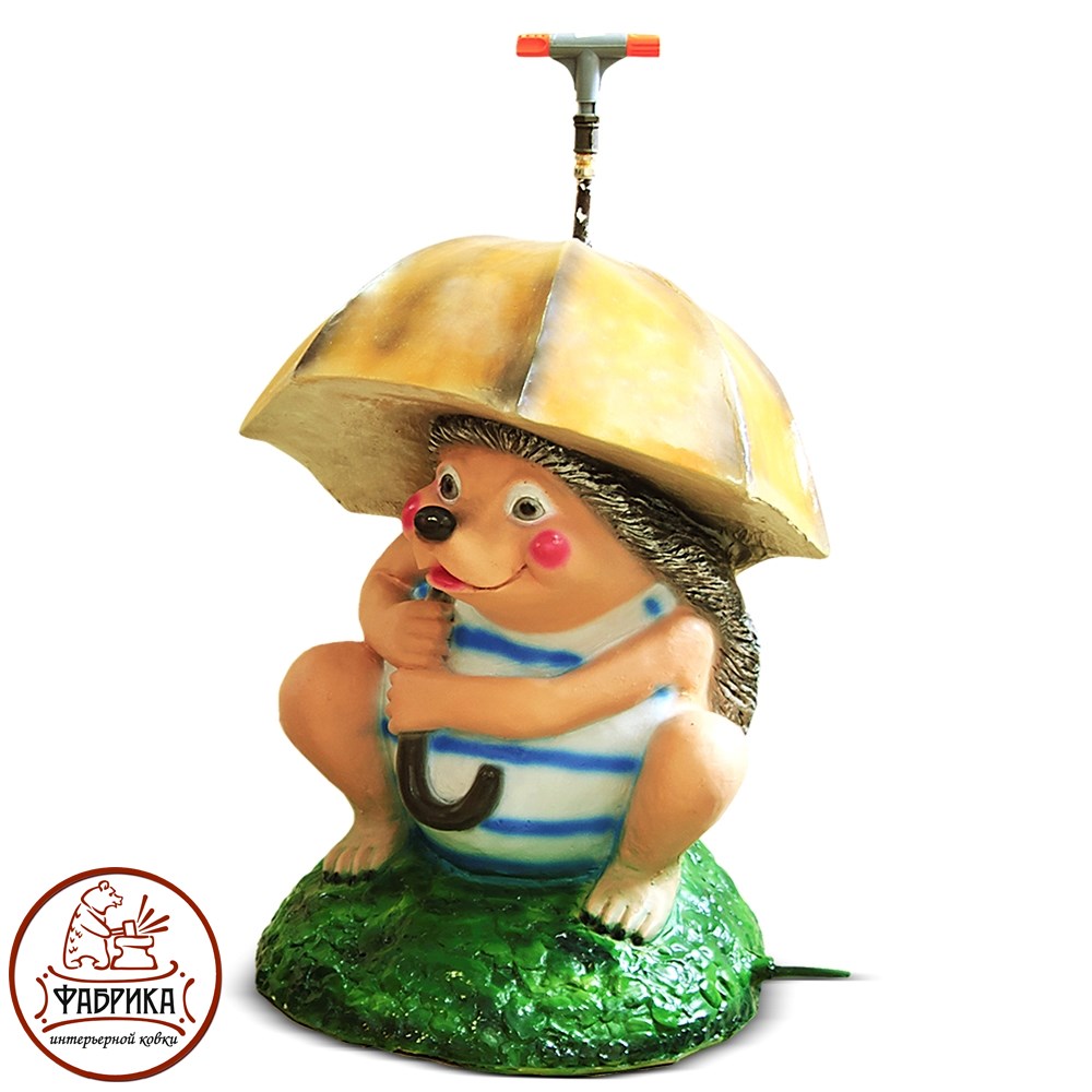 Поливалка садовая Ежик с зонтом для умеренного полива почвы и растений. Возможен подвод воды из системы центрального водоснабжения или от насоса в скважине. В комплект входит опрыскиватель. Такая забавная фигура ежика будет поднимать настроение и орошать участок водой. Ставится на газон или на любую другую поверхность.