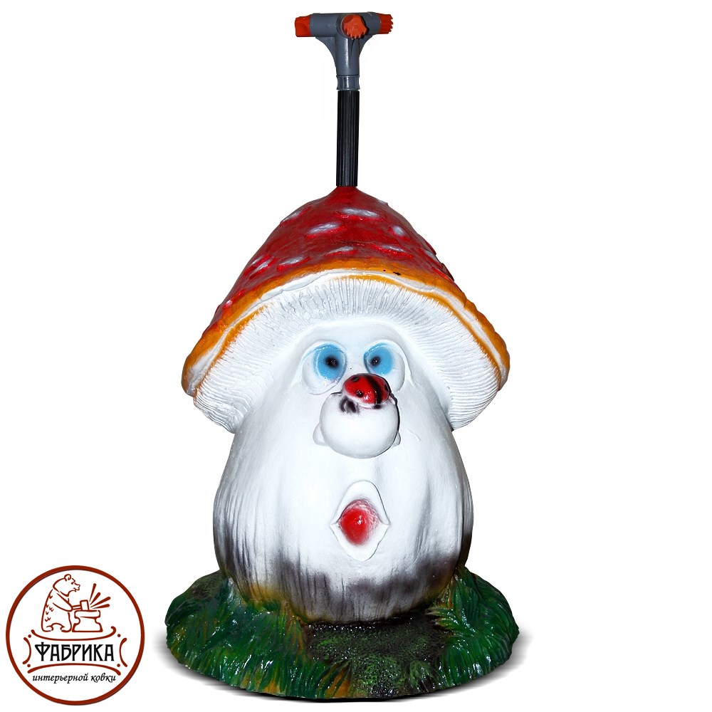 Фигура из водостойкого материала – искусственного камня (полистоуна), выполненная в виде сказочного гриба. Помимо ландшафтного декора выполняет необходимую для садового участка функцию – полив растений.