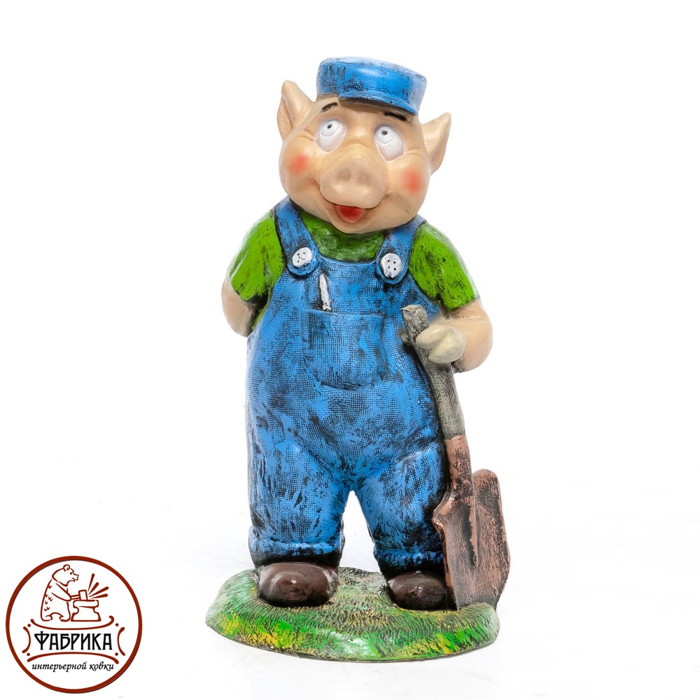 Садовая фигура Поросенок с лопатой арт. U 08349. Материал изготовления: стеклопластик (влагостойкий, для уличного применения). Фигура Поросенка подходит для установки на садовых участках, детских площадках.