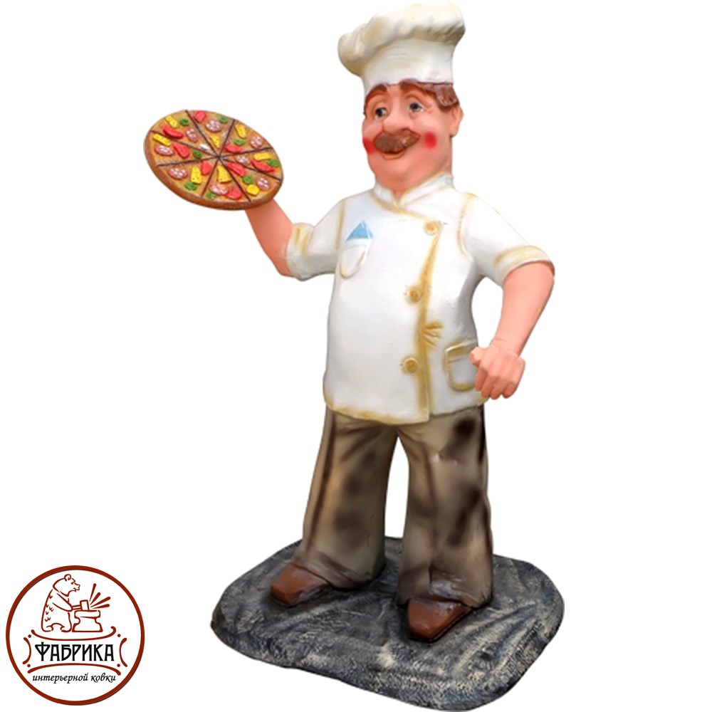 Ростовая фигура Повара с пиццей в руке. Для установки у Пиццерий и кафе. Изготовлен из ударопрочного стеклопластика. Покрашен двухкомпонентной краской стойкой к ультрафиолету.
