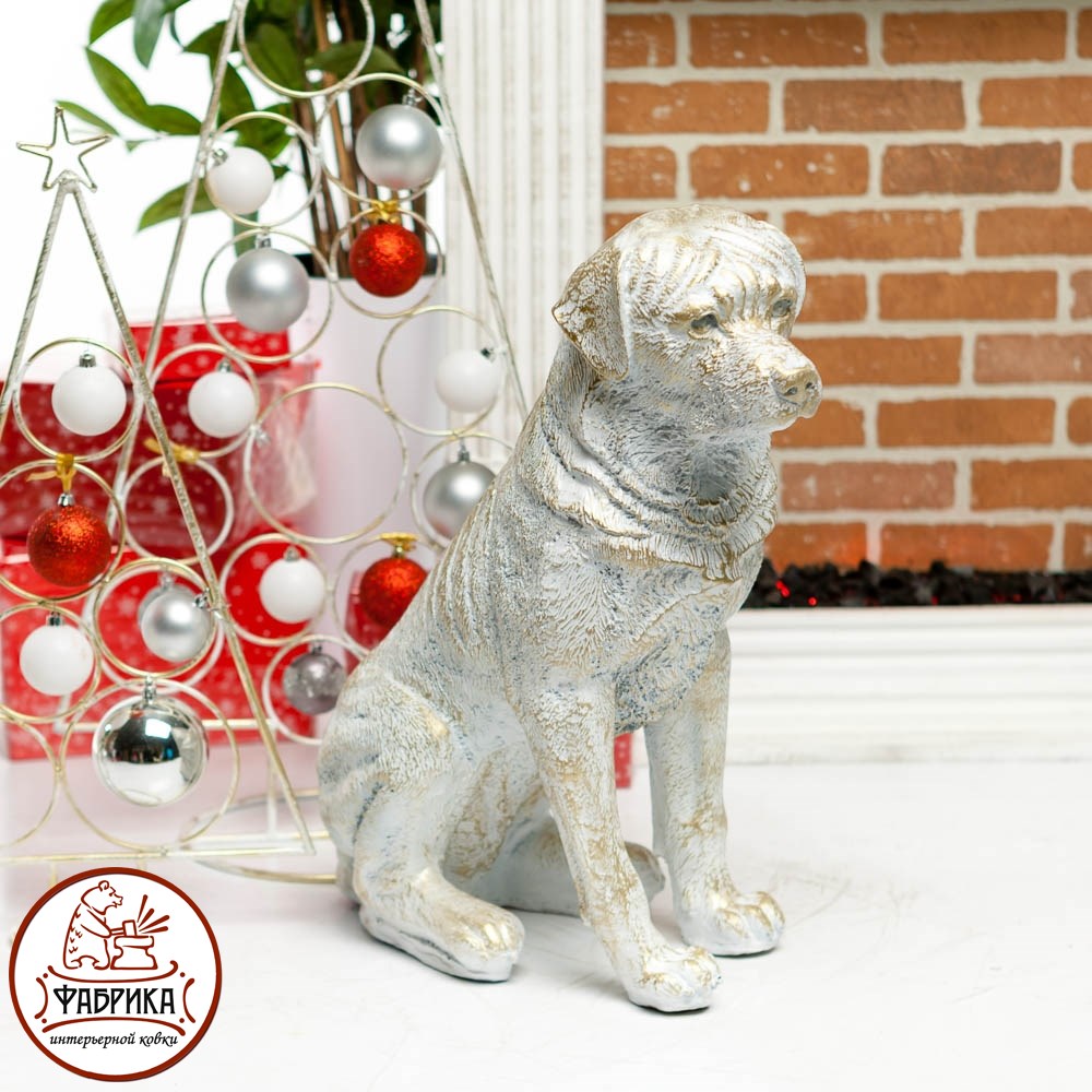 Интерьерная фигура ротвейлер - новогодняя коллекция. Композитный материал изготовления. Подходит для декора помещений, квартир, загородных домов, холлов гостиниц и ресторанов.