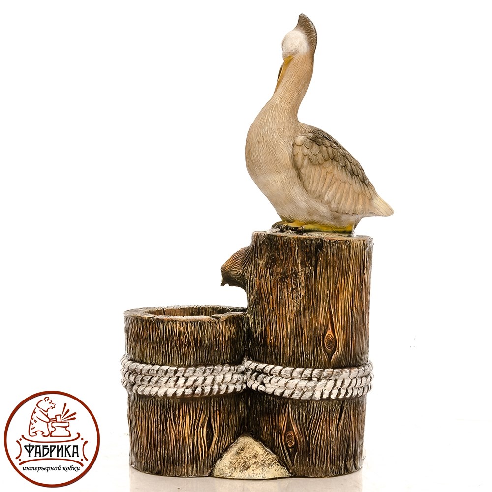 Декоративный фонтан с Пеликаном. Материал изготовления - стеклопластик. Предназначен для установки на садовом или дачном учатске. Для подключения и установки необходимы электричество и вода. Работает от сети 220V.