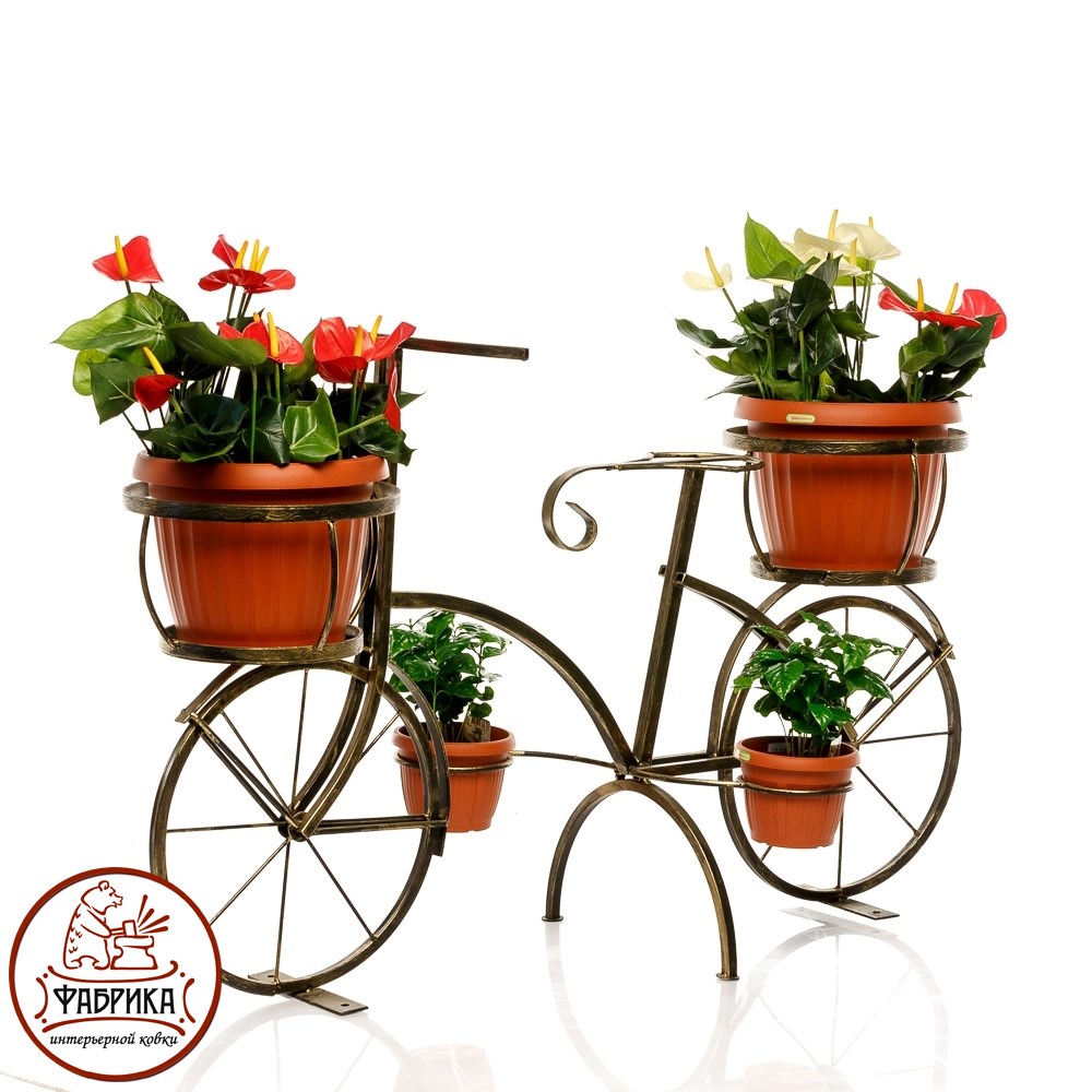 Подставка для цветов 53-605 в форме велосипеда представляет собой изящную конструкцию из кованого металла. Особенно хорошо данная модель будет выглядеть если в неё посадить вьющиеся растения. Выгодная оптовая цена, возможна поставка крупным и мелким оптом.