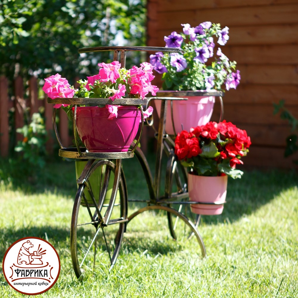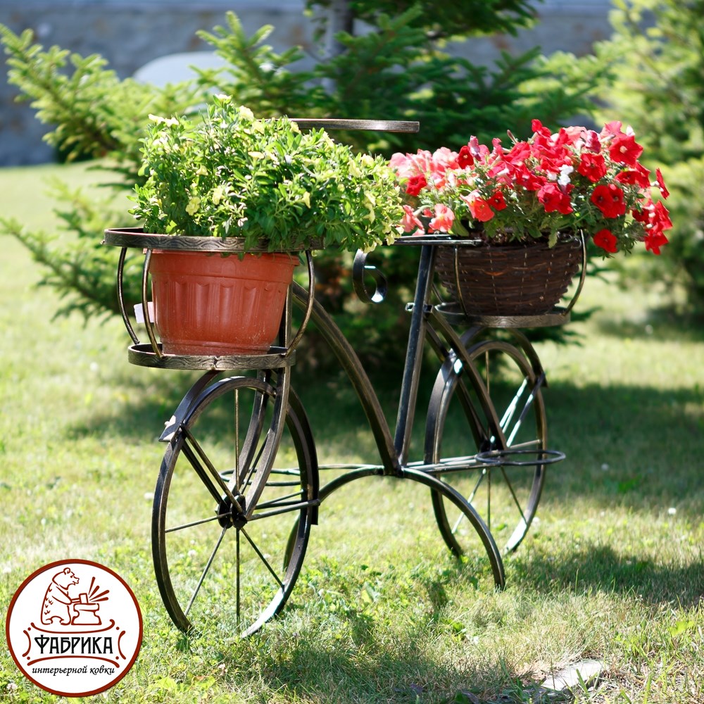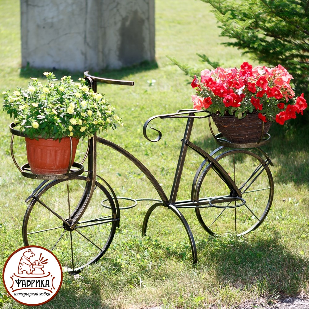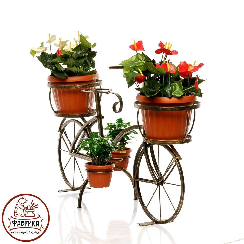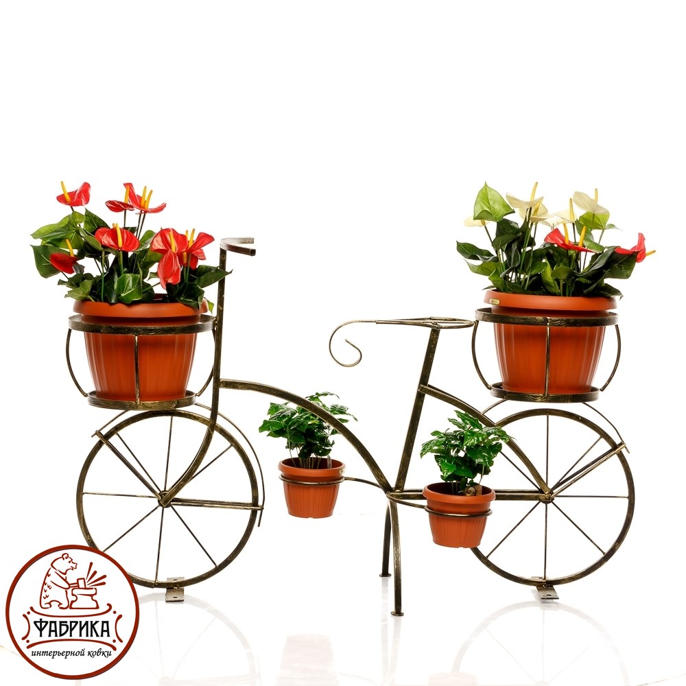 Подставка для цветов 53-605 в форме велосипеда представляет собой изящную конструкцию из кованого металла. Особенно хорошо данная модель будет выглядеть если в неё посадить вьющиеся растения. Выгодная оптовая цена, возможна поставка крупным и мелким оптом.