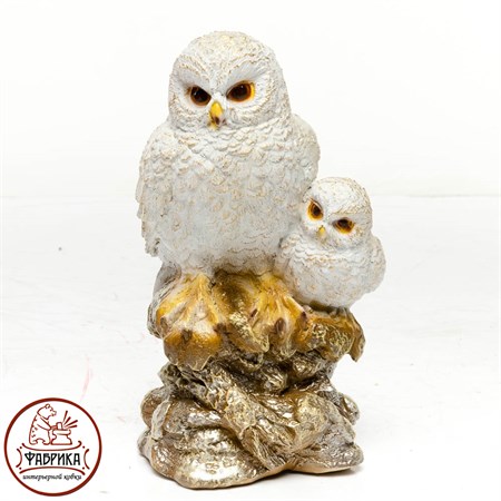 Интерьерная фигура сова с совенком - новогодняя коллекция. Композитный материал изготовления: влагостойкий. Покраска в белый с позолотой цвет. Подходит для декора помещений, квартир, загородных домов, холлов гостиниц и ресторанов.