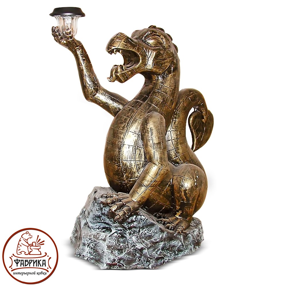 Светильник для освещения садового участка в виде дракона. Фонарик светонакопительный, заряжается днем от солнечного света и светит в ночное время.