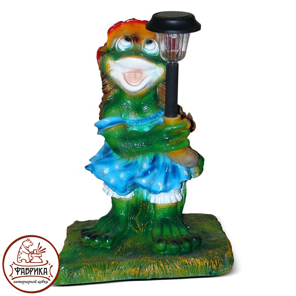 Садовая фигура Лягушка кокетка с фонарем для освещения Вашего сада.