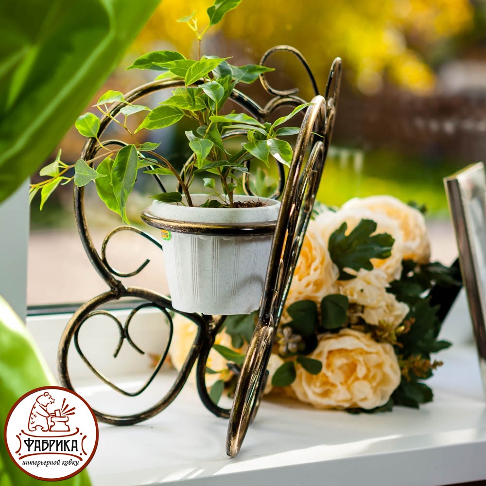 Подставка для цветов на окно из металла. Цветочница декоративная в виде бабочки. Предназначена для размещения одного цветочного горшка.