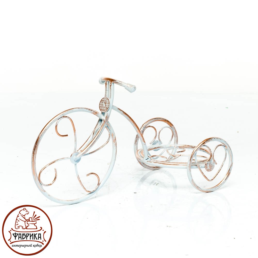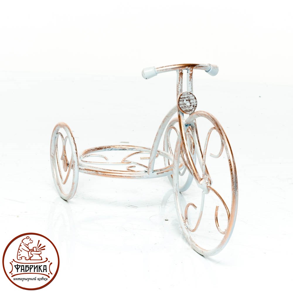 Подставка для одного цветка. Подоконная цветочница. Материал изготовления - металл. Покраска в белый с золотом цвет. Сезонность продаж: октябрь - апрель. Декоративные элементы - колеса.