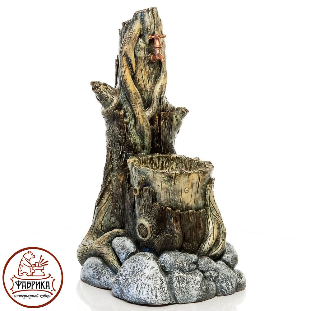 Умывальник для дачи или сада изготовлен из стеклопластика и дерева, представляет из себя кран, с имитацией под бронзу, прикрепленный к массивному квадратному брусу и деревянную кадушку. Подключается к системе водоснабжения Вашего участка. В комплект входят: кран, водопроводная арматура, сифон.