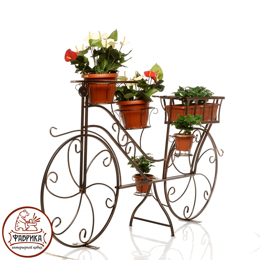 Подставка для цветов 53-604 в форме велосипеда представляет собой изящную конструкцию из кованого металла. Особенно хорошо данная модель будет выглядеть если в неё посадить вьющиеся растения. Выгодная оптовая цена, возможна поставка крупным и мелким оптом.